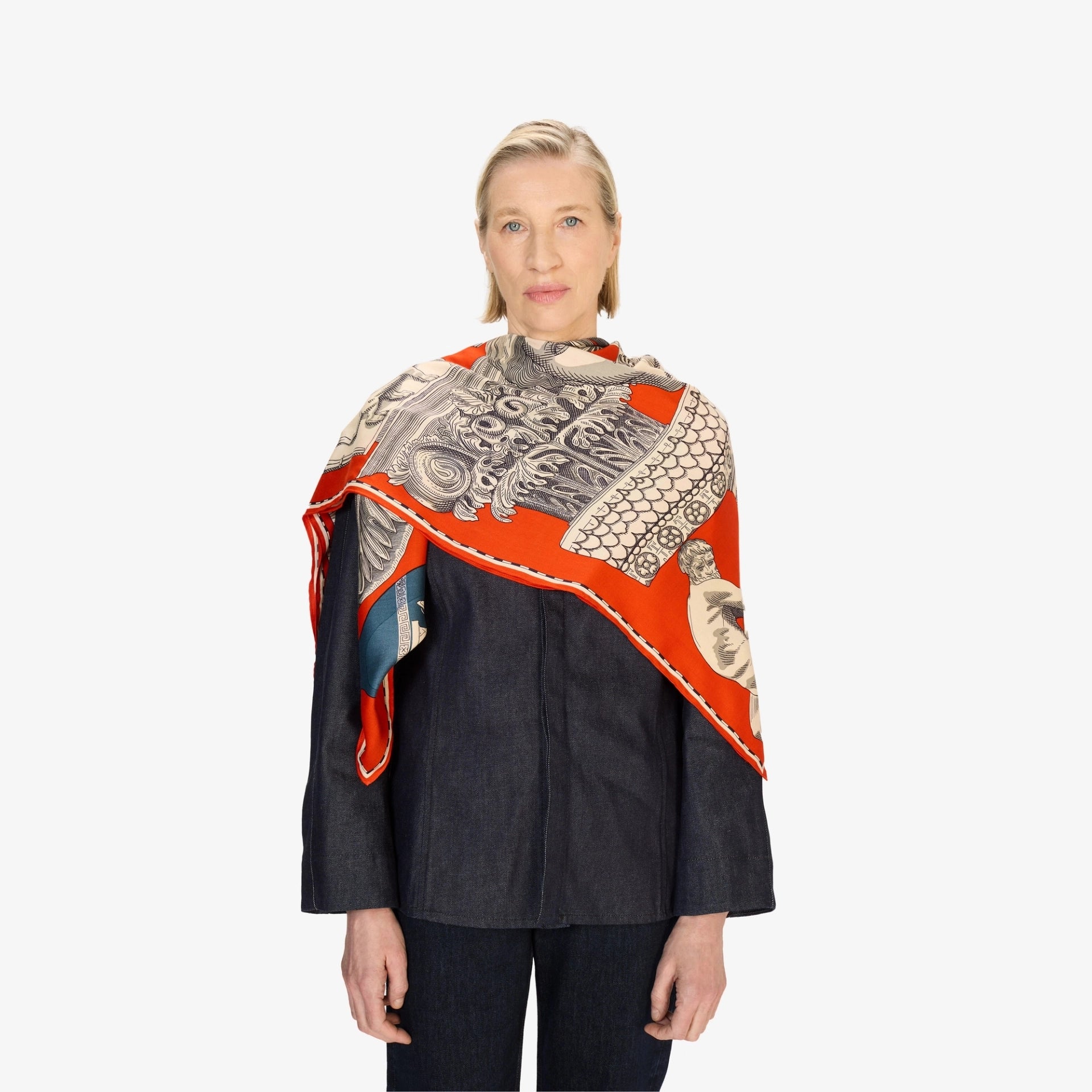 Inoui Editions pour Le Louvre: une collaboration riche de trois dessins exclusifs déclinés en carrés, écharpes et maroquinerie. Présent chez Inoui Editions depuis plusieurs saisons, le carré est maintenant un incontournable de nos collections et se décline en plusieurs tailles suivant les designs. Il se détourne vers de multiples usages, faisant se rencontrer ainsi l'art et le vêtement et devenant une pièce ludique et polyvalente de la tenue. Le carré 130x130 se porte autour du cou ou se noue en jupe ou en top cache-coeur.