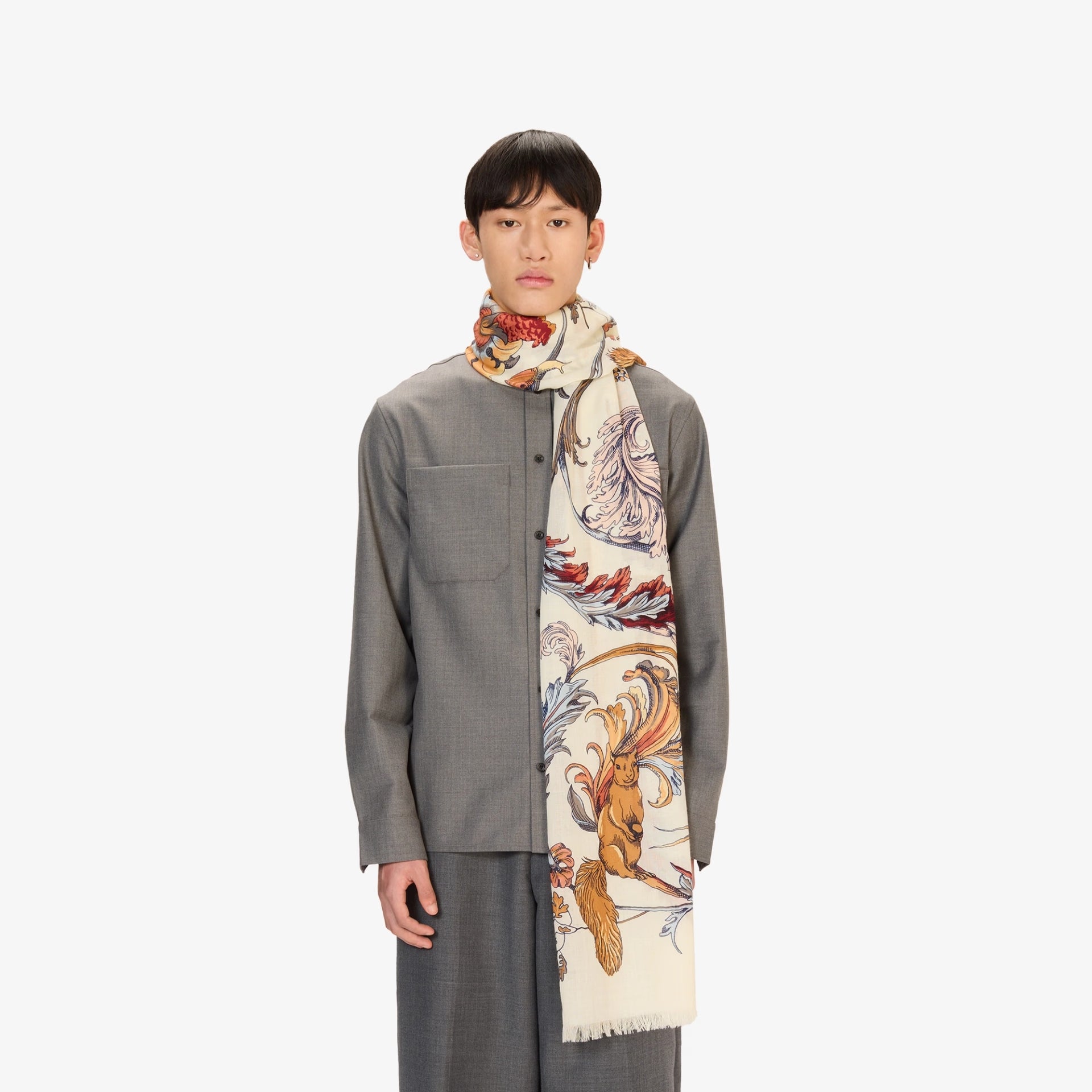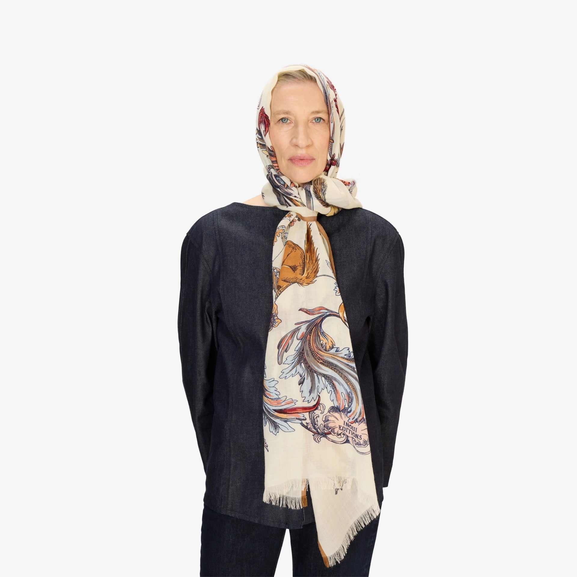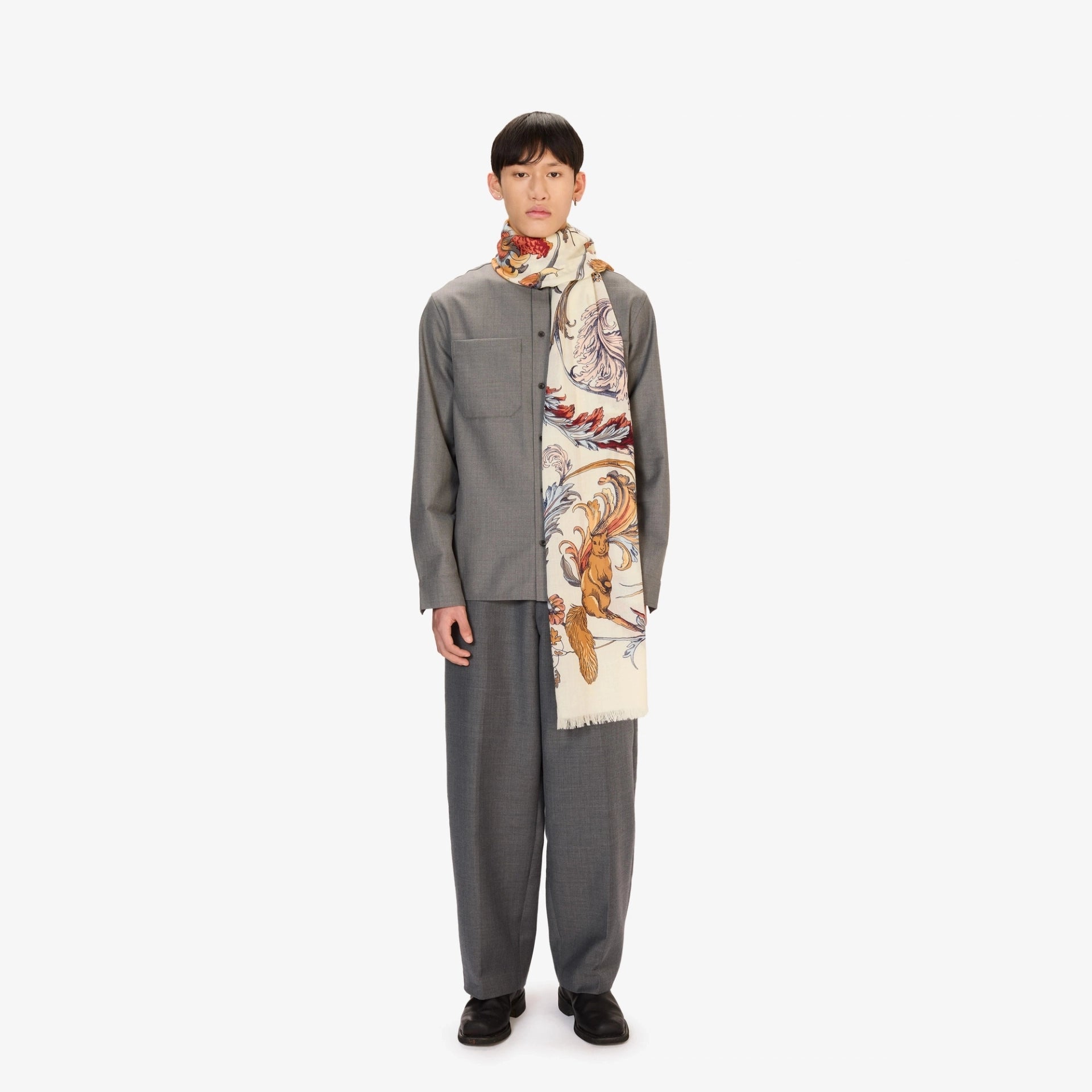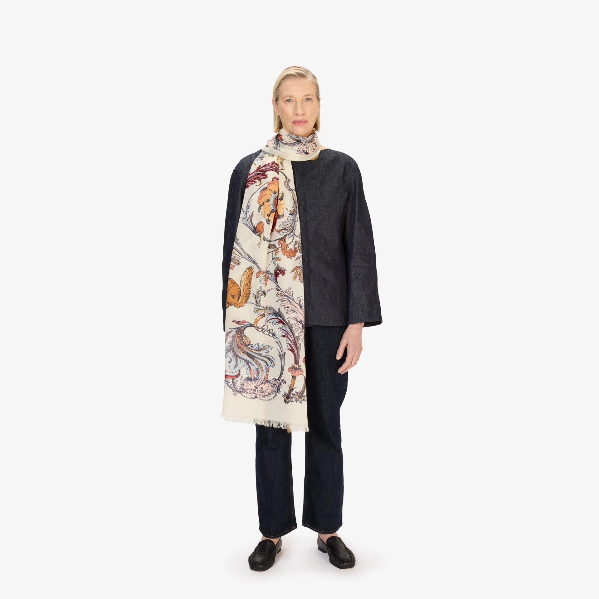 Cette ligne d'écharpes imprimées à la main se décline en plusieurs tailles suivant les designs. Douce et idéale pour l'hiver, la laine a la particularité d'être lavable.