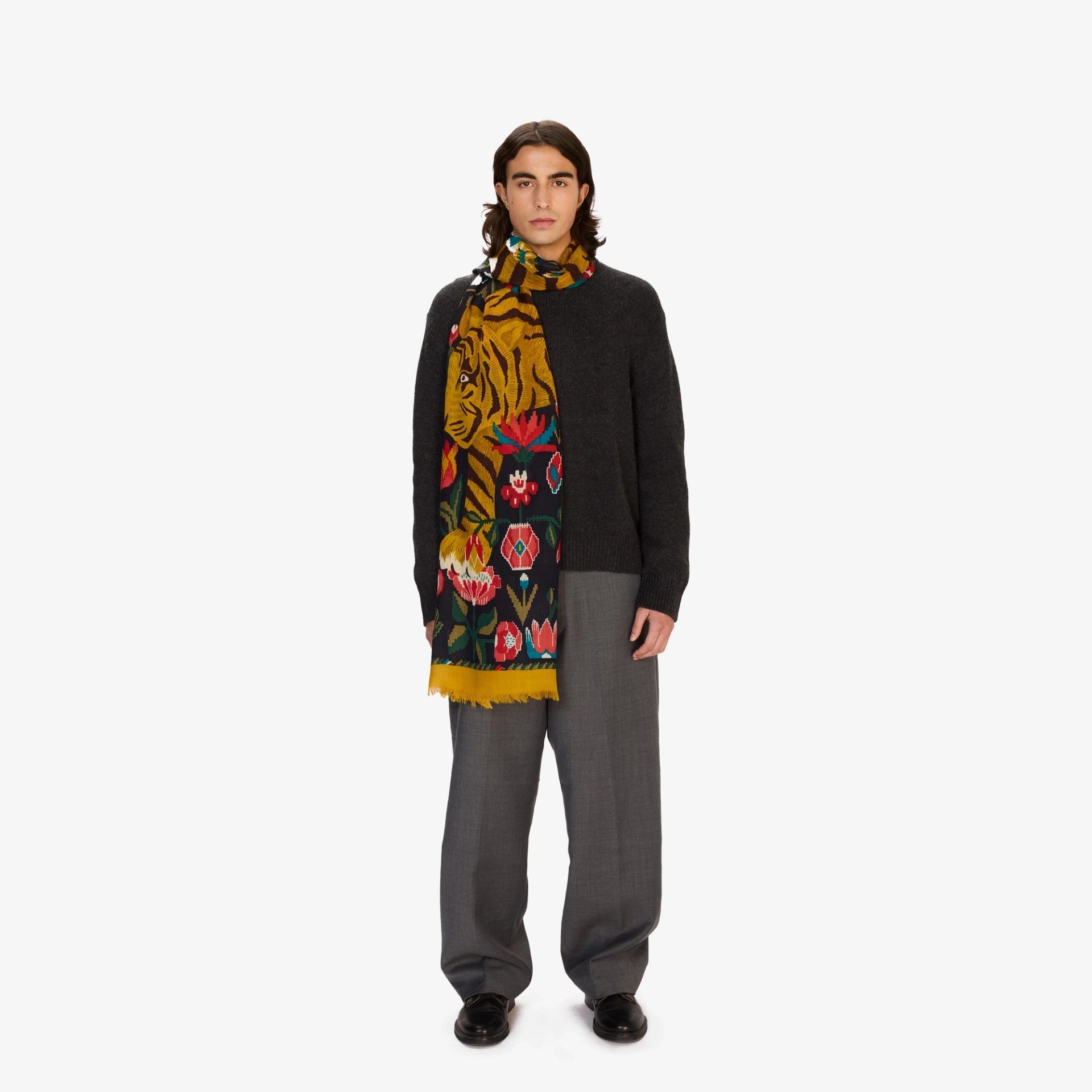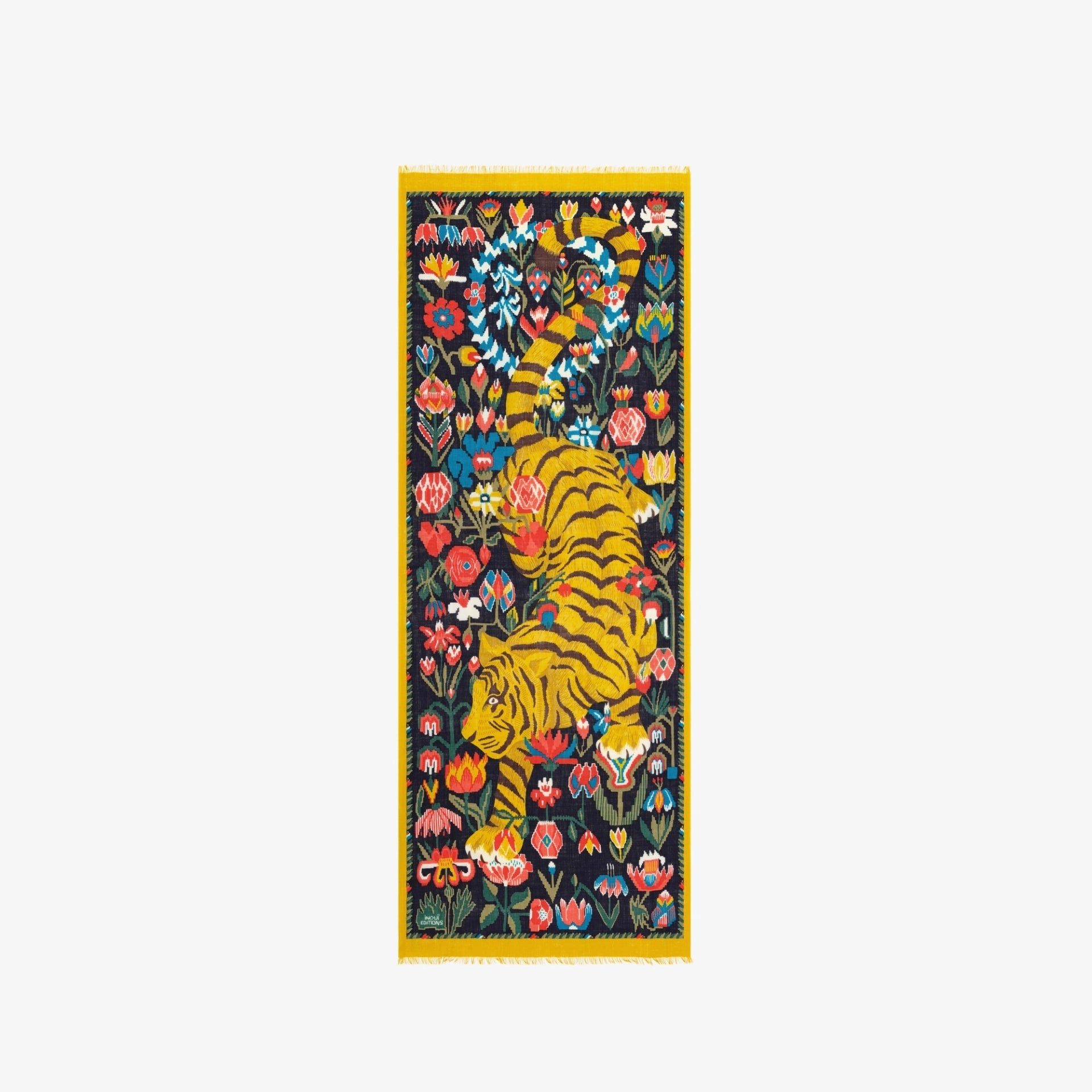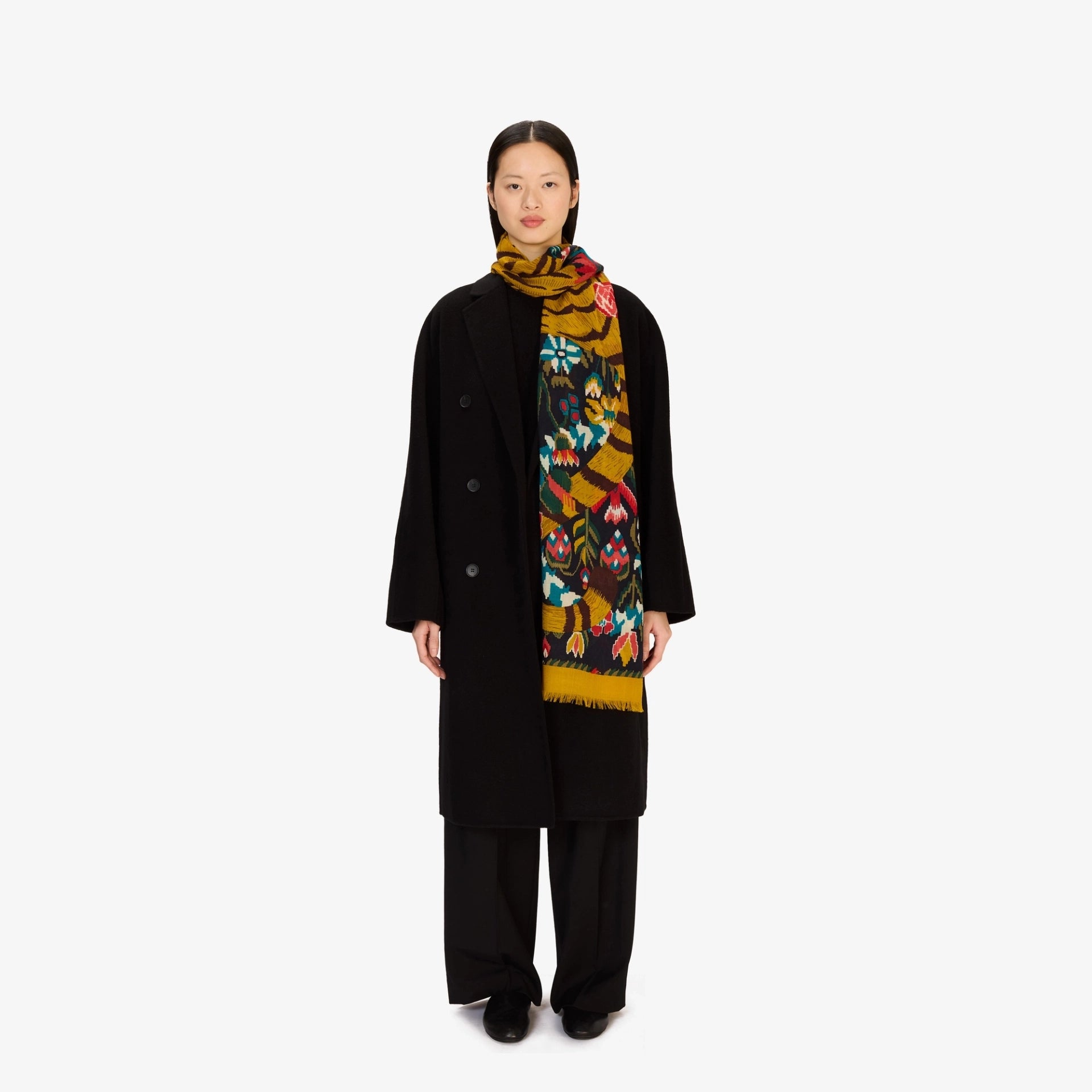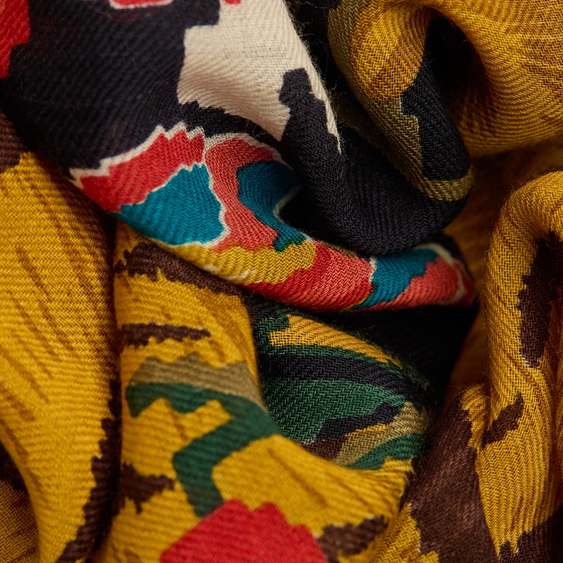 Cette ligne d'écharpes imprimées à la main se décline en plusieurs tailles suivant les designs. Douce et idéale pour l'hiver, la laine a la particularité d'être lavable.
