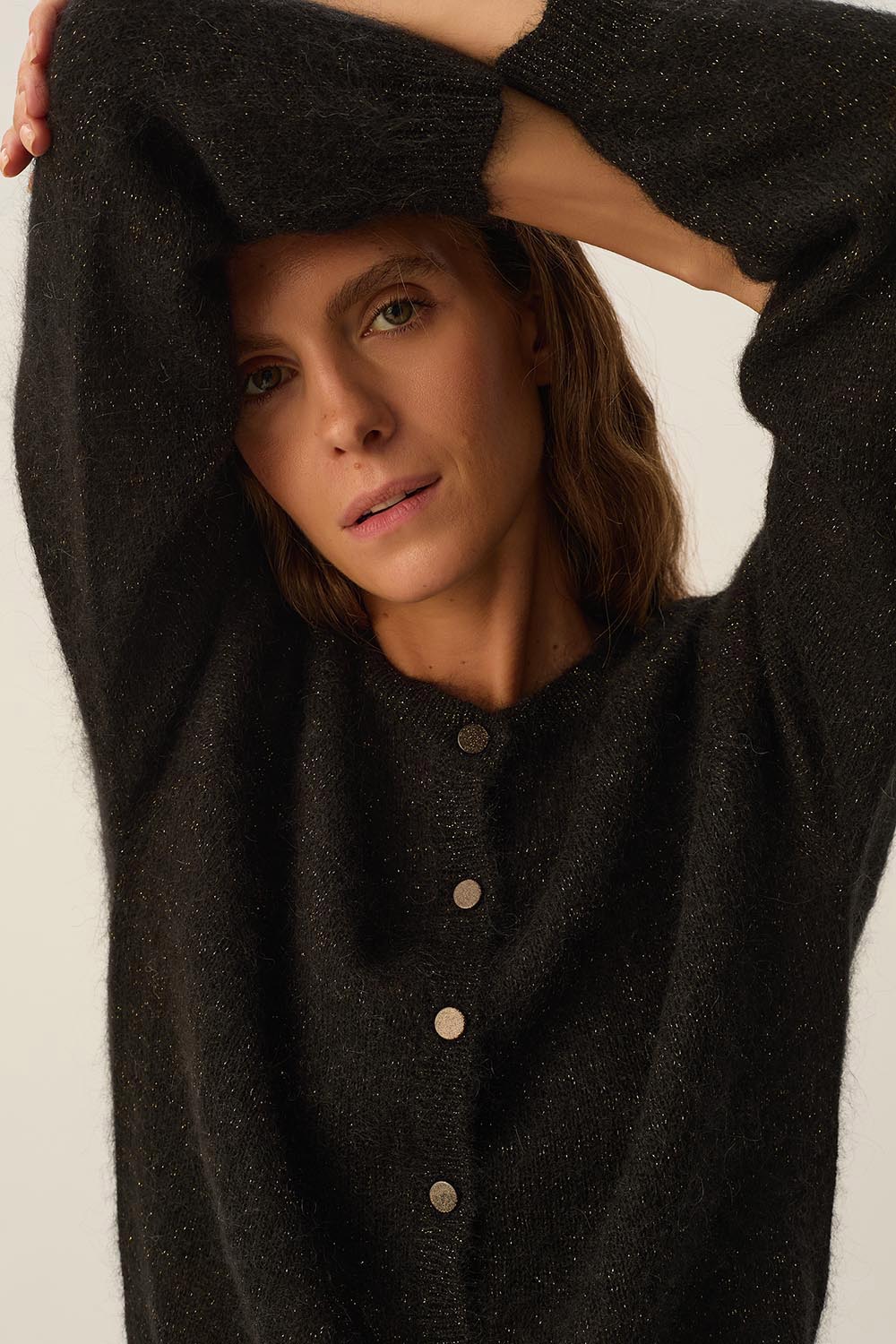 Une maille d’exception à la transparence subtile, un fil pailleté, le gilet Binette insufflera chic et raffinement à vos looks d'hiver.