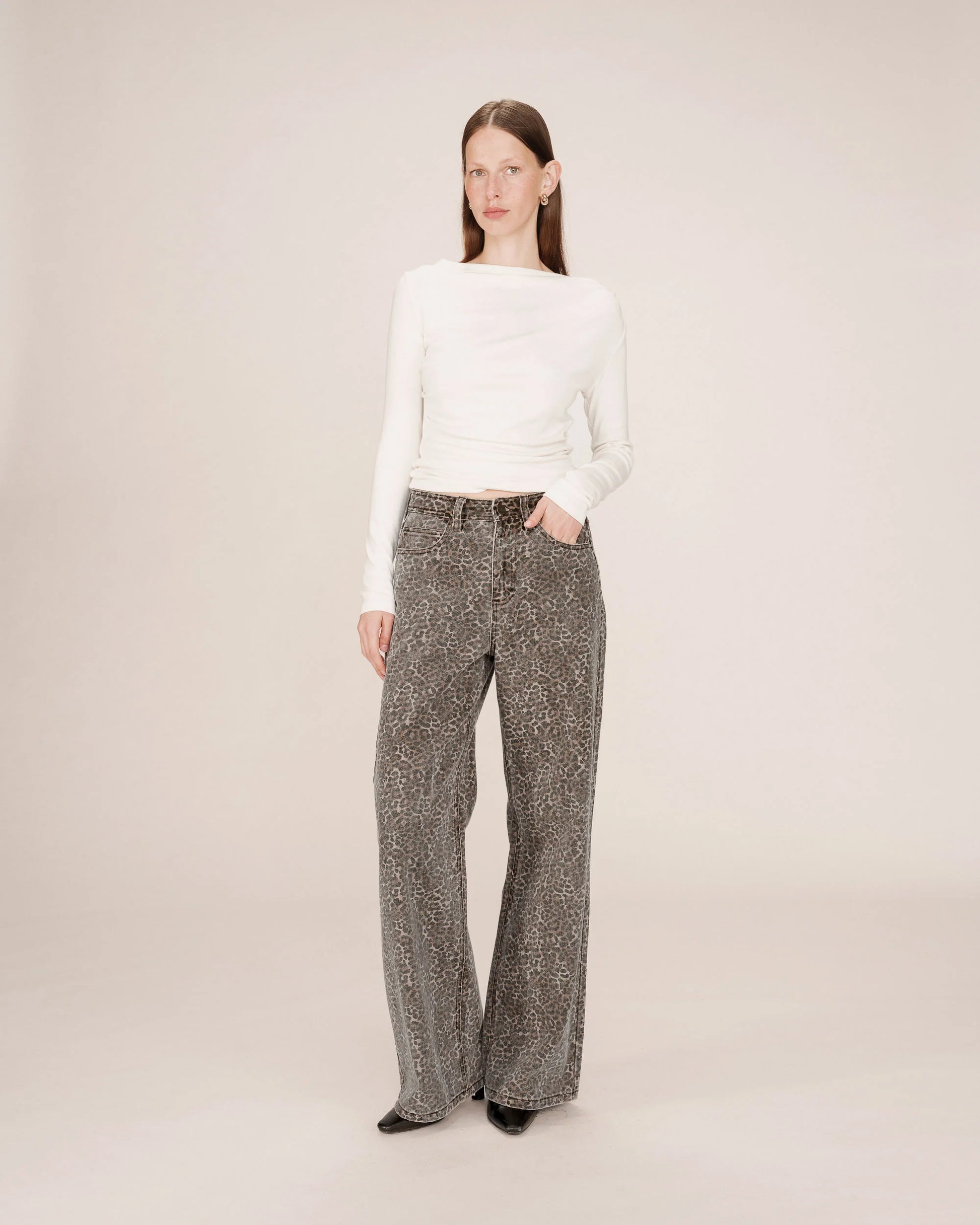 Le pantalon loose SOCCA revisite l'intemporel imprimé léopard dans une coupe loose et dessine une silhouette moderne et tendance. La coupe taille haute et légèrement évasée en bas propose une allure décontractée et s'invite dans le vestiaire du quotidien. Le pantalon léopard SOCCA est agrémenté d'une fermeture zippée boutonnée ainsi que d'un jacron en cuir au dos.