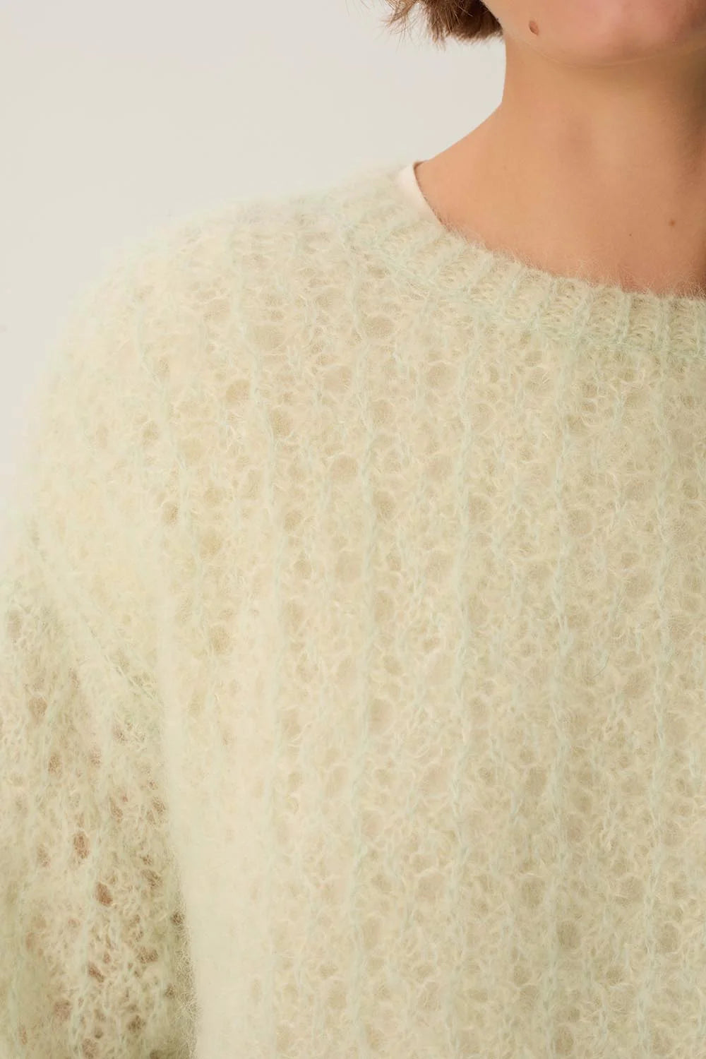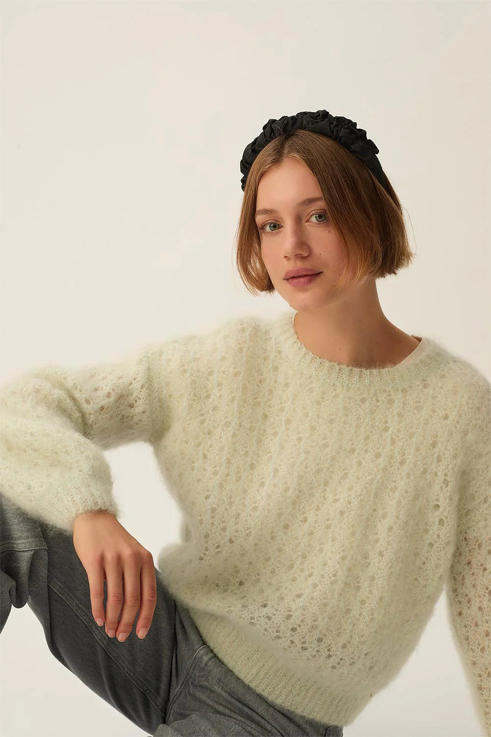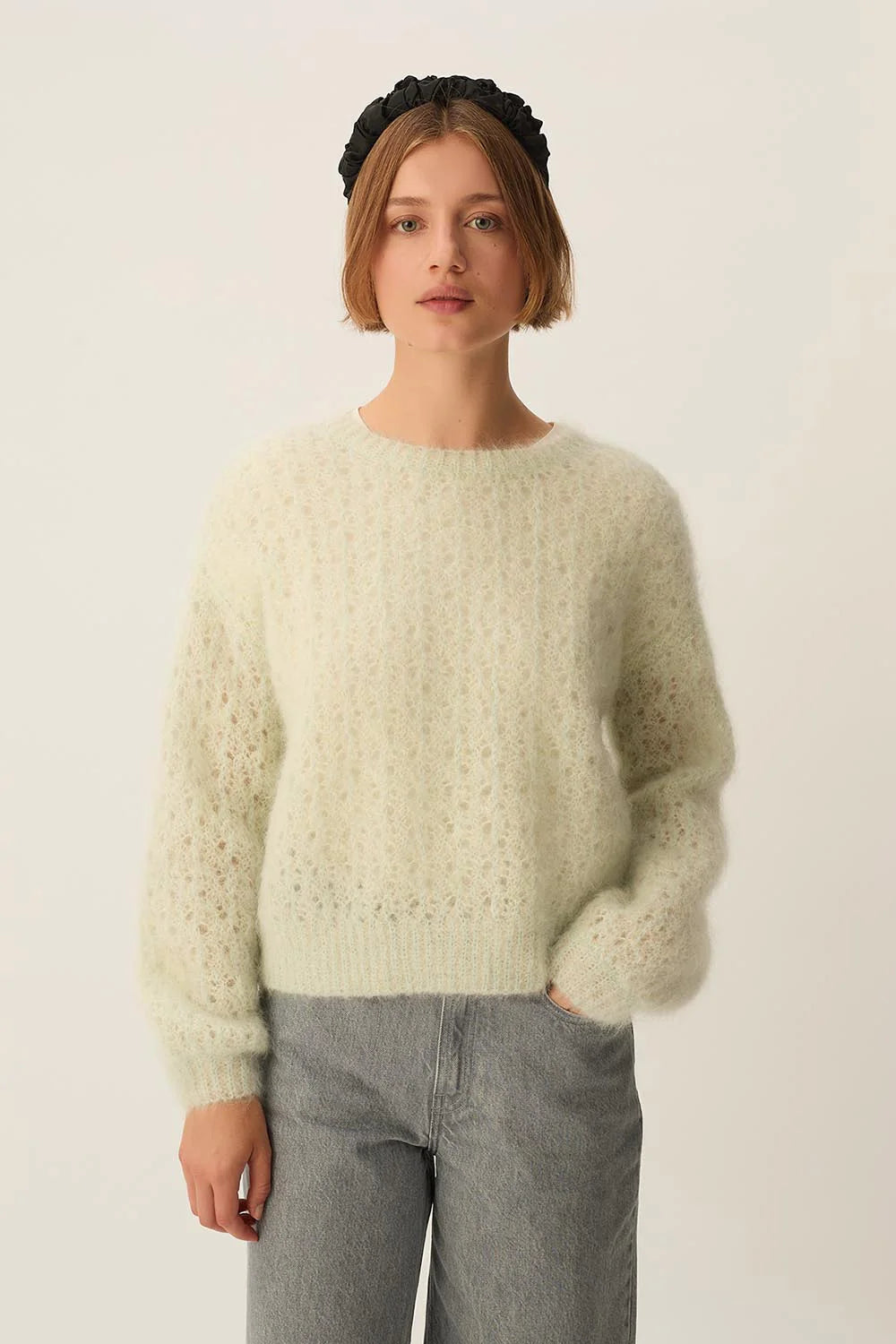 Bohème chic et moelleux avec son tricot ajouré et sa coupe légèrement oversize, le pull Chimon opte pour une declinaison de coloris tendres qui viendront illuminer le vestiaire d'hiver.