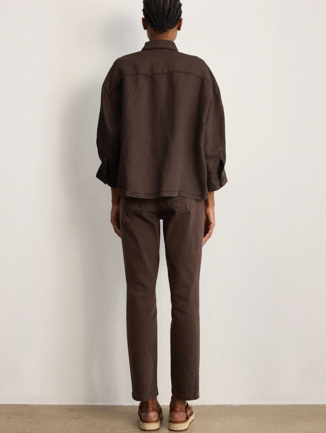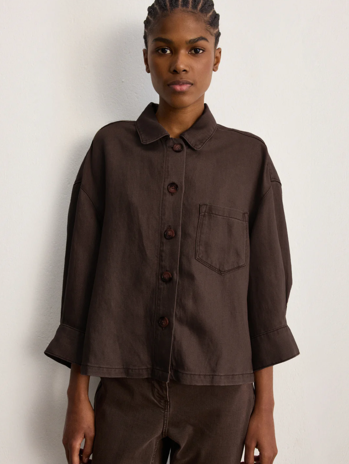 Cette surchemise ample, confectionnée dans un mélange de lyocell et lin au tombé souple, offre une allure chic sans effort. Son coloris marron, facile à associer, apporte une décontraction naturelle. Elle pourra se porter avec le pantalon assorti.